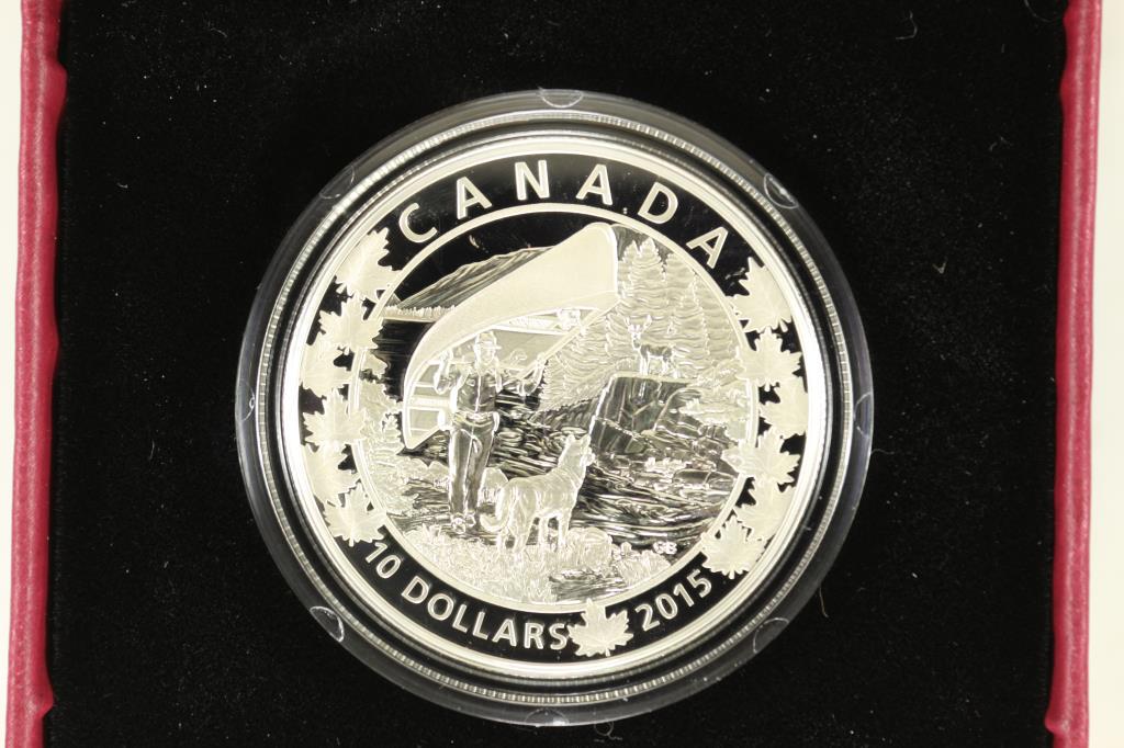 Sold2015 CANADA $10 FINE SILVER PROOF COINCANOE ACROSS CANADA EXQUISTE ENDING ORIGINAL ROYAL CANADIAN MINT PACKAGINGSee Sold Price