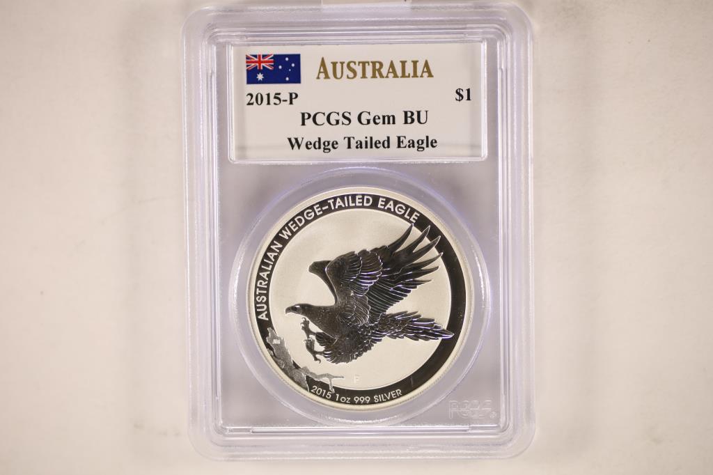 SoldPCGS 2015-P Australia silver Dollar in GEM BUWedge Tailed Eagle. John Mercanti signed LabelSee Sold Price