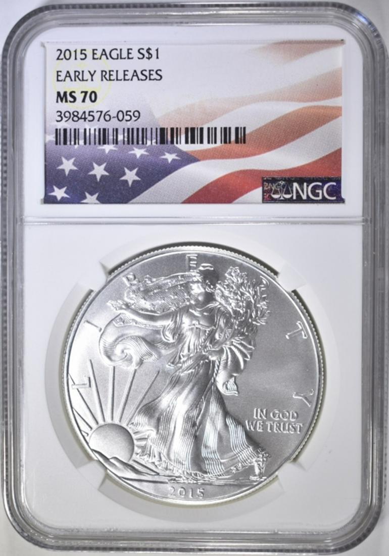 2015 SILVER EAGLE, NGC MS-70 EARLY RELEASES