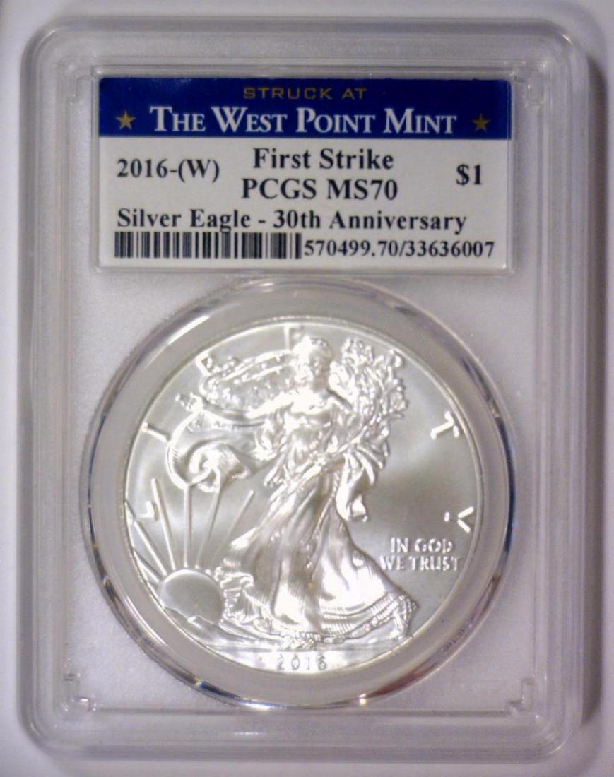 Sold2016 (W) Silver Eagle West Point Mint PCGS MS702016 (W) Silver Eagle West Point Mint PCGS MS70. Celebrating the 30th Anniversary of the Silver Eagle Series, this one has provenance of being struck at the West Point Mint.See Sold Price