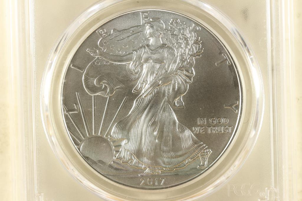 Sold2017 SILVER EAGLE, PCGS MS-70 FIRST DAY ISSUEWEEKLY COIN & CURRENCY AUCTIONS ESTIMATE $90 - $110.See Sold Price