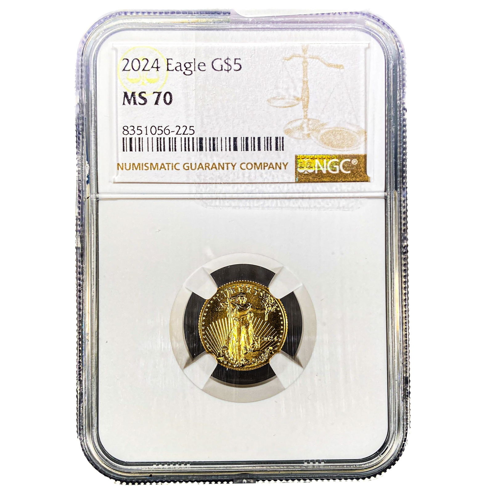 2004 $5 American Gold Eagle – NGC MS70 – 1/10 oz GoldMar 14, 20262022 1/4oz Gold Eagle $10 NGC MS70Mar 15, 20262018 $5 American Gold Eagle – NGC MS70 – 1/10 oz GoldMar 14, 20262004 1/2oz Gold Eagle $25 NGC MS69Mar 14, 20262000 $5 American Gold Eagle – NGC MS69 – 1/10 oz GoldMar 14, 20262005 $5 American Eagle 1/10th Ounce Fine Gold Coin NGC MS 692 days Left2012-W Burnished 1oz Gold Eagle $50 NGC MS704 days Left2012-W Burnished 1oz Gold Eagle $50 NGC MS794 days Left2025 $5 American Gold Eagle – NGC MS70 – 1/10 oz Gold – Gold & Silver Naples LabelMar 14, 20262004 1/2oz Gold Eagle $25 NGC SM69Mar 14, 20261998 NGC MS70 $50 Gold Eagle Uncirculated CoinMar 05, 20261993 $5 American Gold Eagle – NGC MS69 – 1/10 oz GoldMar 14, 2026$5 Gold Eagles - 1992 $5 Gold Eagle NGC MS701 day Left1989 NGC MS70 Ten Dollar Gold Eagle Coin Uncirculated3 days LeftNGC MS70 1987 $50 Gold Eagle Uncirculated Bullion CoinMar 04, 20262017 $5 American Gold Eagle – NGC MS70 – 1/10 oz GoldMar 14, 2026