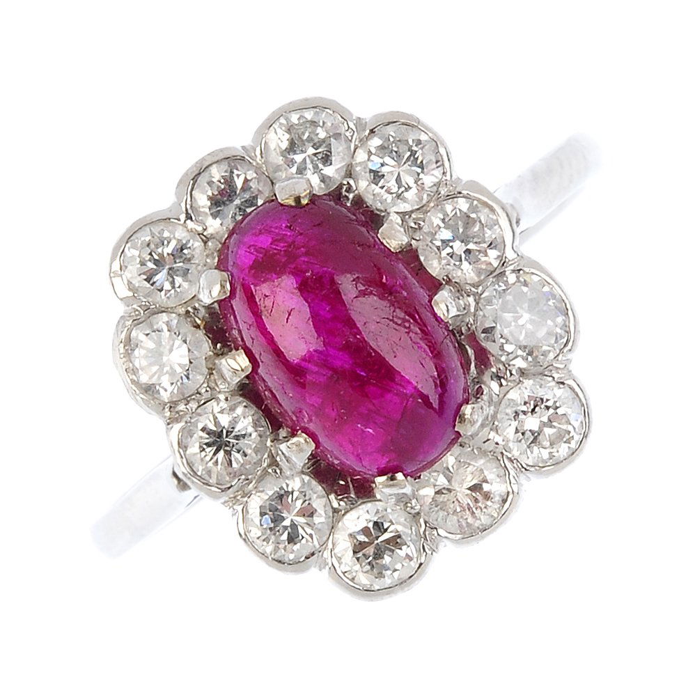 (204165) 1x An 18ct gold ruby and diamond cluster ring.