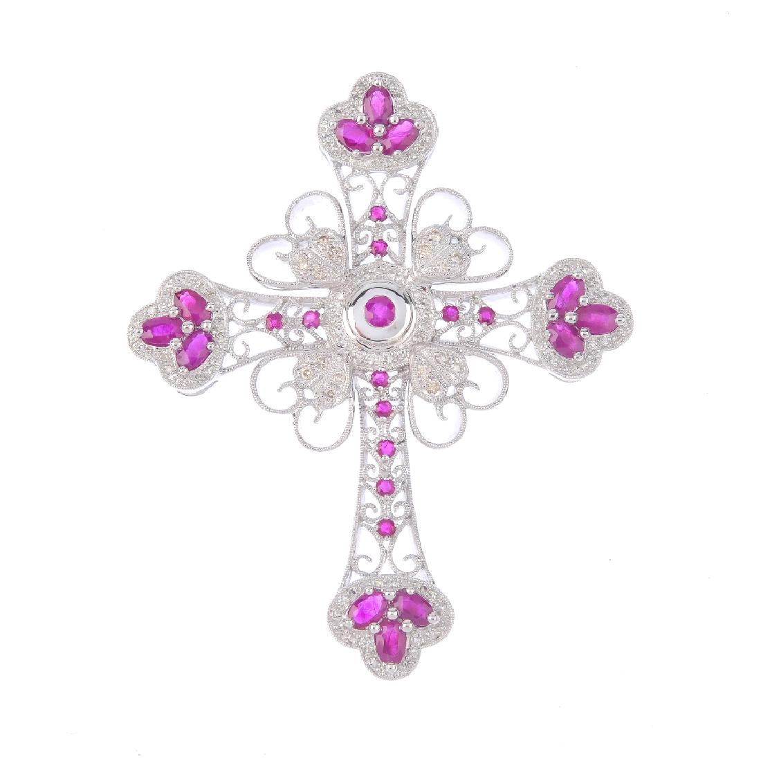 Exclusive 18K White Gold 0.75ct Diamond and Ruby Cross NecklaceEastern European Art Gallery Inc$1,7004 days Left