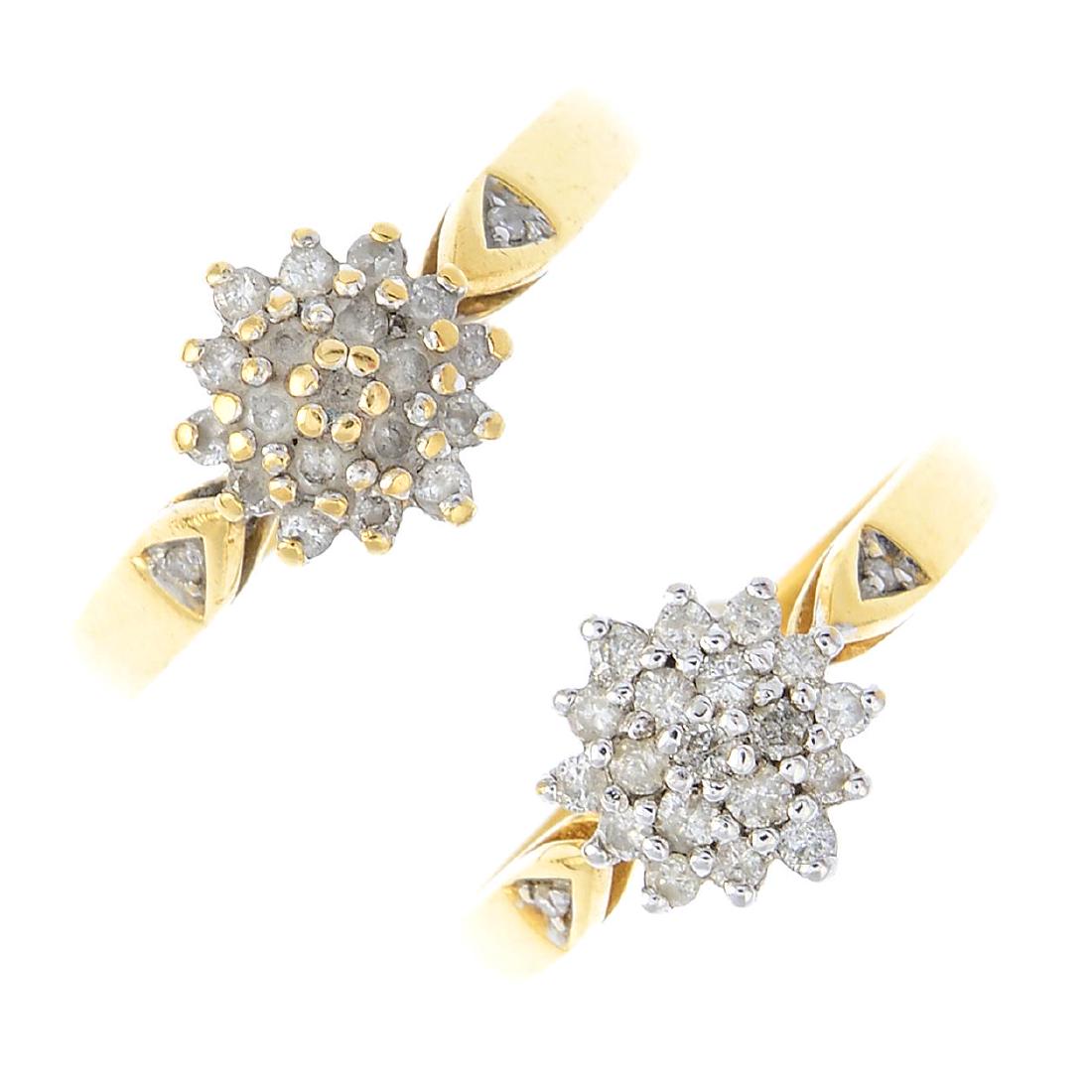 (207282) Two diamond cluster rings. Each designed as a