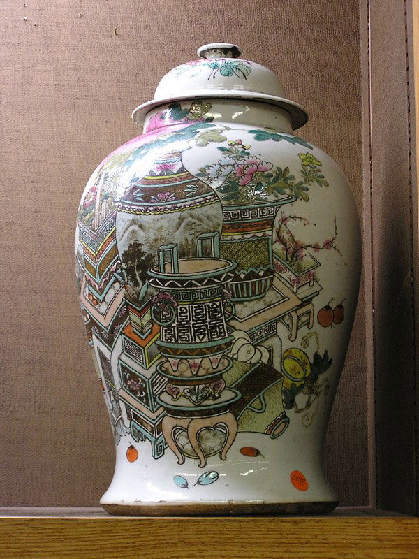 2078: Chinese polychrome lidded jar, 17.5"