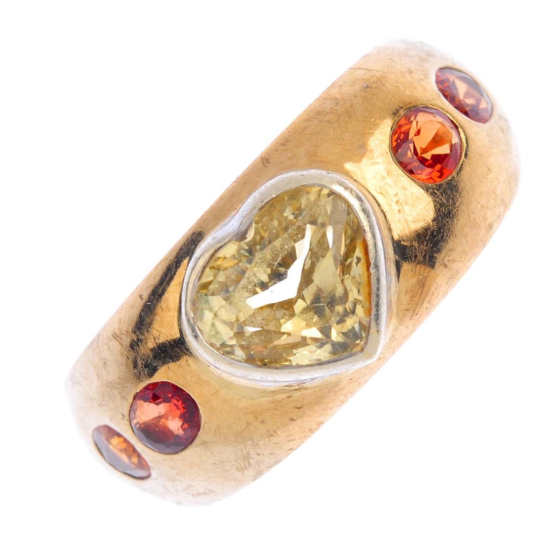 (208074) A 9ct gold gem-set ring. The heart-shape