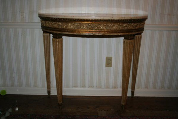 Vintage Italian Neoclassical Console Table with Faux Marble Top4 days LeftIron base demi lune console table, faux marble wood top, table is 35.25" by 21", height 29.5"Mar 09, 2026French Marble Top Console TableMar 08, 2026Hekman French Style Console Table with Marble Top 50.5in3 days LeftVintage French Style Marble Top TableA GILTWOOD AND PAINTED SATINWOOD DEMI-LUNE CONSOLE TABLE, IN THE MANNER OF THOMAS CHIPPENDALEAntique French marble top carved console in original distressed paintMar 08, 2026Gilt wood onyx top console table, onyx crack2 days Left19th Century Louis XV Console Table with Breche d'Alep Marble TopMar 14, 2026Antique giltwood demilune console with marble top3 days LeftAdams Style Console Table with Marble Top and 1 Drawer6 days LeftAdams Style Console Table with Marble Top and 1 Drawer3 days LeftBomby Co. Demilune Marble Top Console TableMar 07, 2026Maitland Smith Italian Regency Marble Top Console Table1 day LeftCARVED & GILDED MARBLE TOP CONSOLE TABLEMar 08, 2026Henkel Harris Model 5752M Chippendale Marble Top Console Table1 day Left