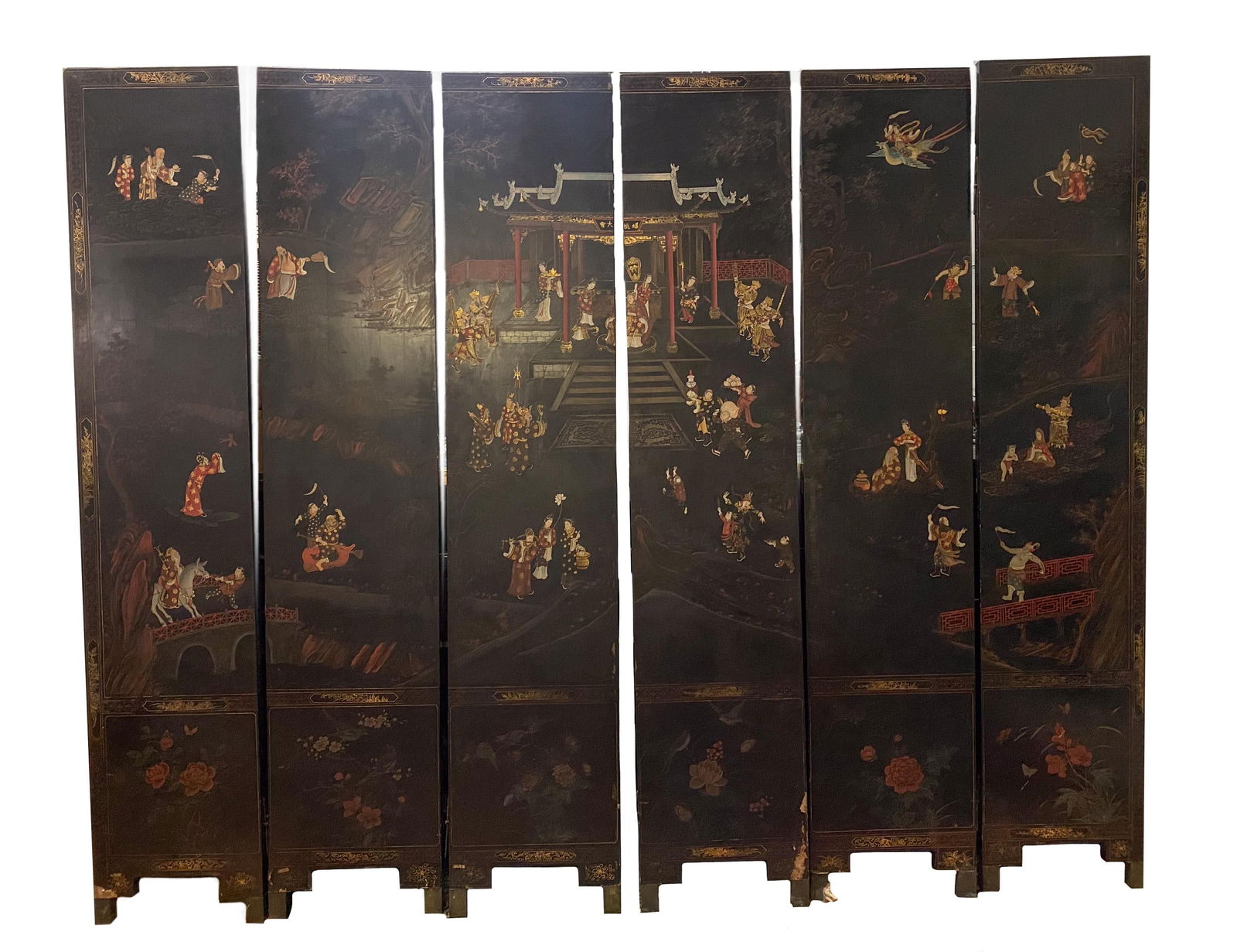 20th C Chinese Auspicious 6 Panel Room Divider