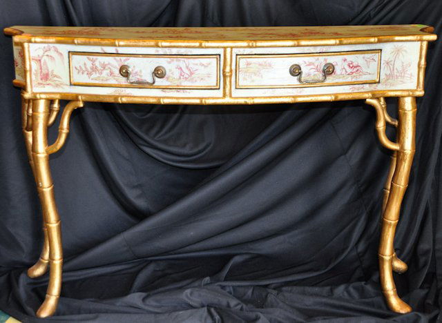 Vintage French Louis XVI Style Demilune Console Table18th Century French Louis XV Gilt Bronze Mounted Kingwood Commode molded marbleFrench Louis XV Period Marble-Top Console TableMar 08, 2026Italian Neoclassical Gilt and Green Painted Faux Marble Top Console Table5 days LeftModel of a brass console table3 days LeftMid Century Chinoiserie style Console Table5 days LeftA WALNUT AND PARCEL GILT CONSOLE TABLE, IN GEORGE II STYLE, CONTEMPORARYHalf-moon console3 days LeftShaped console3 days LeftGilt wood onyx top console table, onyx crackMar 02, 2026A GILTWOOD AND PAINTED SATINWOOD DEMI-LUNE CONSOLE TABLE, IN THE MANNER OF THOMAS CHIPPENDALEFr. 19th Century Louis XV Style 2 Drawer ChestMar 07, 2026French giltwood console table.2 days LeftLouis XV Style Giltwood Console Table with Black Marble TopMar 07, 2026AN EARLY VICTORIAN SIMULATED BAMBOO WASH STAND, MID 19TH CENTURYMar 03, 202619th Century French Louis XV Bombe ChestMar 07, 2026