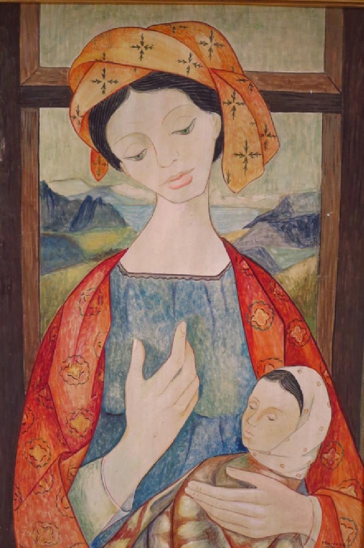 SoldMarrugat, Sp., 20th., Mother & infant, Gouache/Bd.Marragut, Spanish School, later 20th c., Mother and Infant, gouache on board, signed lower right, Barcelona gallery label verso. (QLCA75){TC} from a North Street Litchfield CT estate Measurements:22.5See Sold Price