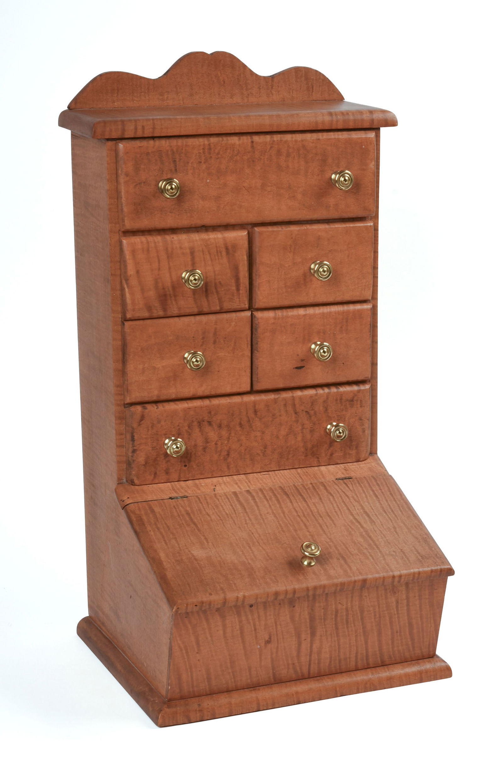 20TH C MINIATURE TIGER MAPLE HANGING CABINET
