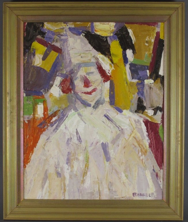 20th C O/C by Barrel, Abstract Clown