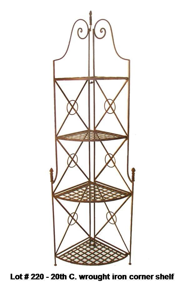 Mid-century Wroght Iron Scrolling Trestle Style Elevated Planter StandCostal Three Tiered Dark Stained Rattan Shelf w East Asian Motif TopsWrought Iron Plant Stand1 day LeftAn iron and brass baker's rack, late 19th/early 20th century, French,Mar 18, 20261930s Wrought Iron Magazine Rack / Magazine HolderIndustrial iron tiered bakers rackMar 07, 2026Wrought Iron Wine Rack Console.Mar 07, 2026ANTIQUE BURNT BAMBOO FOUR-TIERED CORNER SHELF4 hrs LeftEarly wrought-iron & wood gun rackMar 28, 2026Cast iron wall shelf4 days LeftVintage Bamboo Tall Etagere with Glass Shelves Coastal Decor2 days LeftVintage Wrought Iron Seven-Bottle Wine Holder by Arthur UmanoffVintage Mid-Century Collapsible Wire Shelf Rack 1940s-1950s3 days LeftFrench Provincial 3-tier wire plant standMar 07, 2026Wrought Iron and Brass Quilt StandMar 22, 2026French-Style Tiered Plant Stand with Planter TopperMar 08, 2026