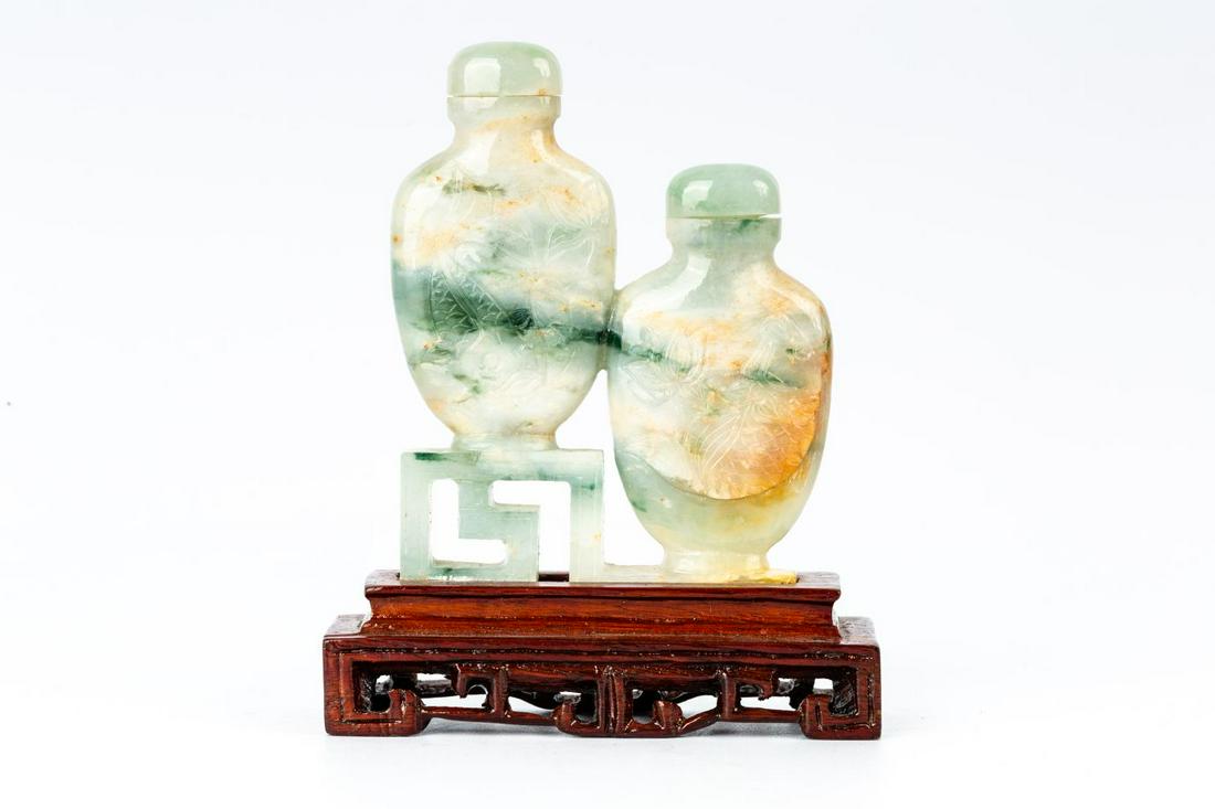 20TH CENTURY JADEITE TWIN BOTTLE