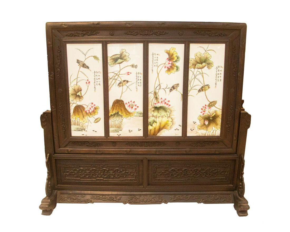 Chinese Hand-Carved Hardwood Bar Cabinet with Figural & Landscape Relief Panels2 days LeftFamille - rose Porcelain Plaque Table Screen with Flower PatternsMar 08, 2026Old collection rosewood exquisitely carved lotus-themed tea tray14 hrs LeftA HUANGHUALI "HUNDRED TREASURES" INLAID SCREEN PANEL WITH MANDARIN DUCKS IN A LOTUS POND MOTIFMar 05, 2026Chinese 4-Panel Enamel Decorated Table Screen.Mar 08, 2026Lotus flowers plaque by Liu Yuchen2 days LeftLotus flowers plaque by Liu YuchenMar 10, 2026A Japanese black lacquered wood table cabinetMar 03, 2026Famille - rose Porcelain Plaque Table Screen with Figure PatternsMar 08, 2026A HARDSTONES INLAID LACQUER TABLE SCREEN5 days LeftChinese Hardwood Table Cabinet2 days LeftScreen with mother of pearl, China 19th century,Mar 13, 2026A rare, old wooden plaque from a distinguished collection, inscribed with the words "Mystical Arts14 hrs LeftA ZITAN SCREEN PANEL INLAID WITH HETIAN JADE AND DECORATED WITH FIGURAL NARRATIVE MOTIFMar 05, 2026Famille - rose Porcelain Plaque Table Screen with Figure PatternsMar 08, 2026A Precious Cloisonne Inlaid Gems Lotus and Bats Pattern Table ScreenMar 14, 2026