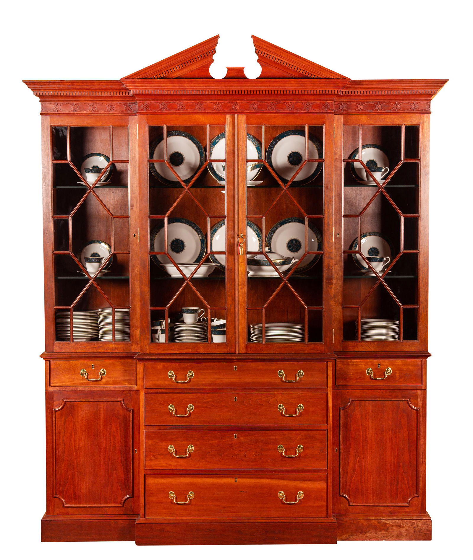 20thC Chippendale Style Two Part Cherry Breakfront