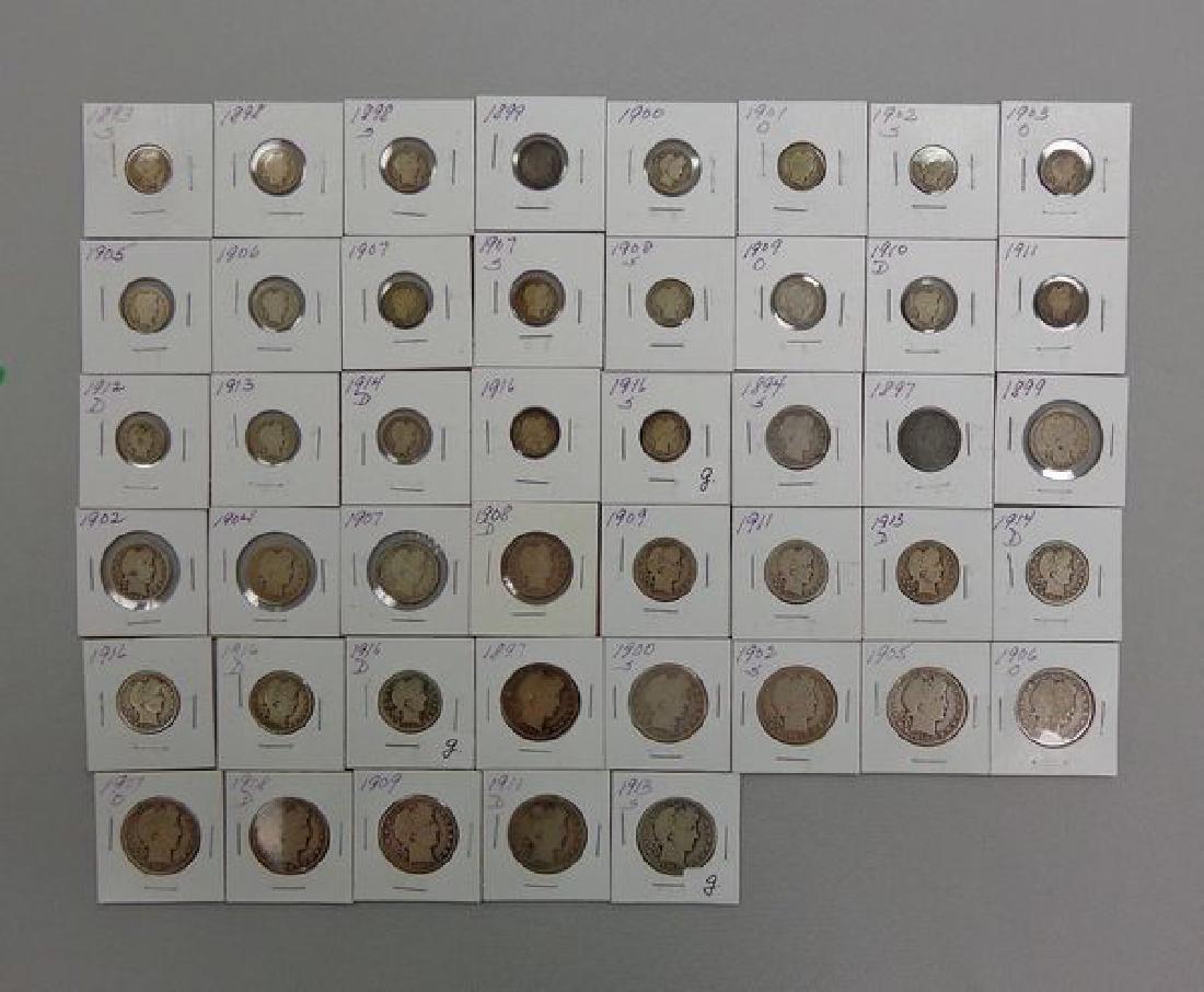 (21) BARBER DIMES, (14) BARBER QUARTERS