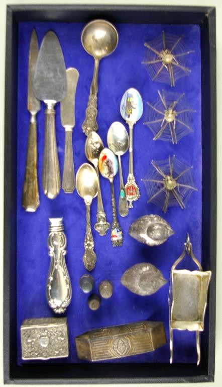 21-PIECE SILVERTONE GROUP including souvenir spoon