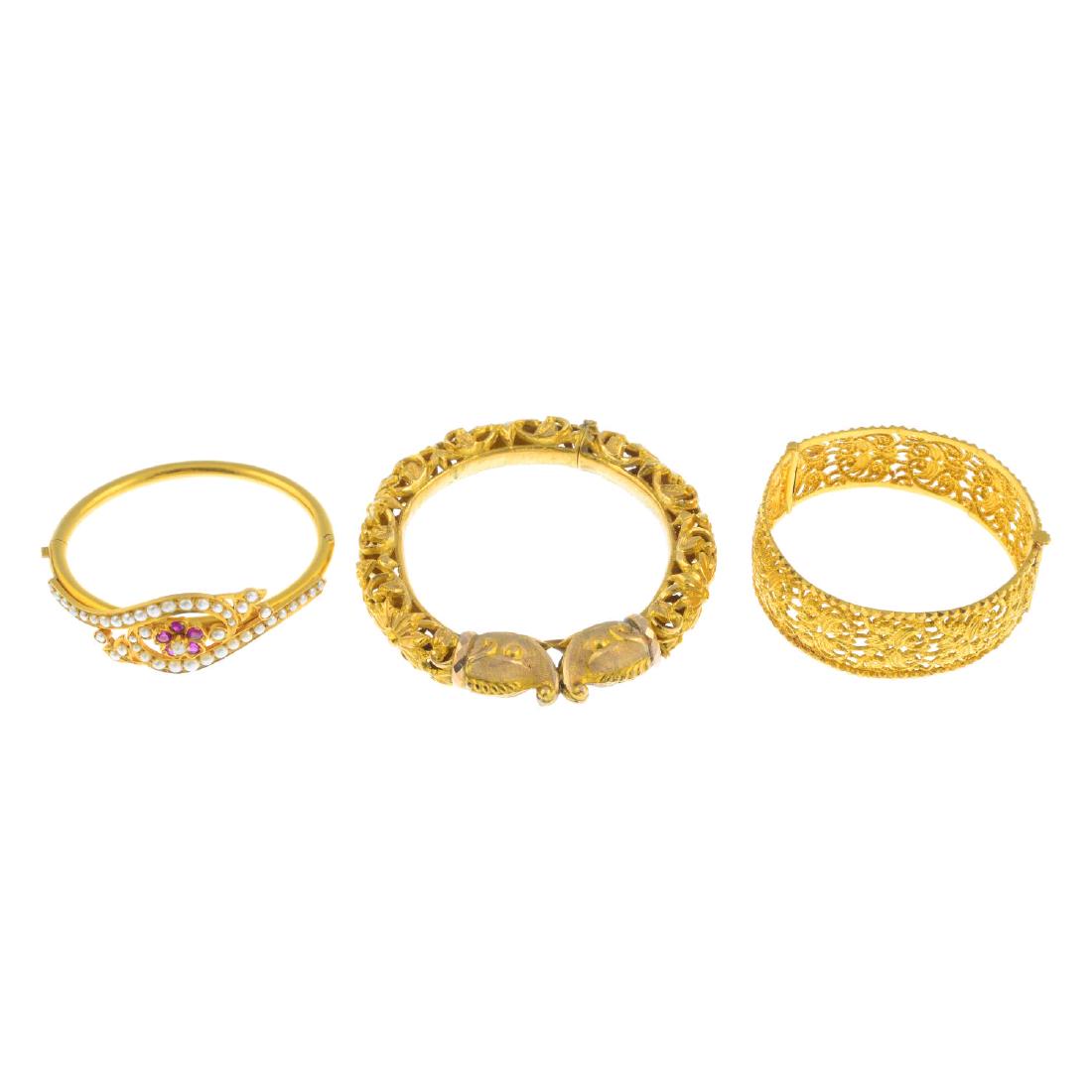 (210168) Three bangles. To include a glass-filled ruby