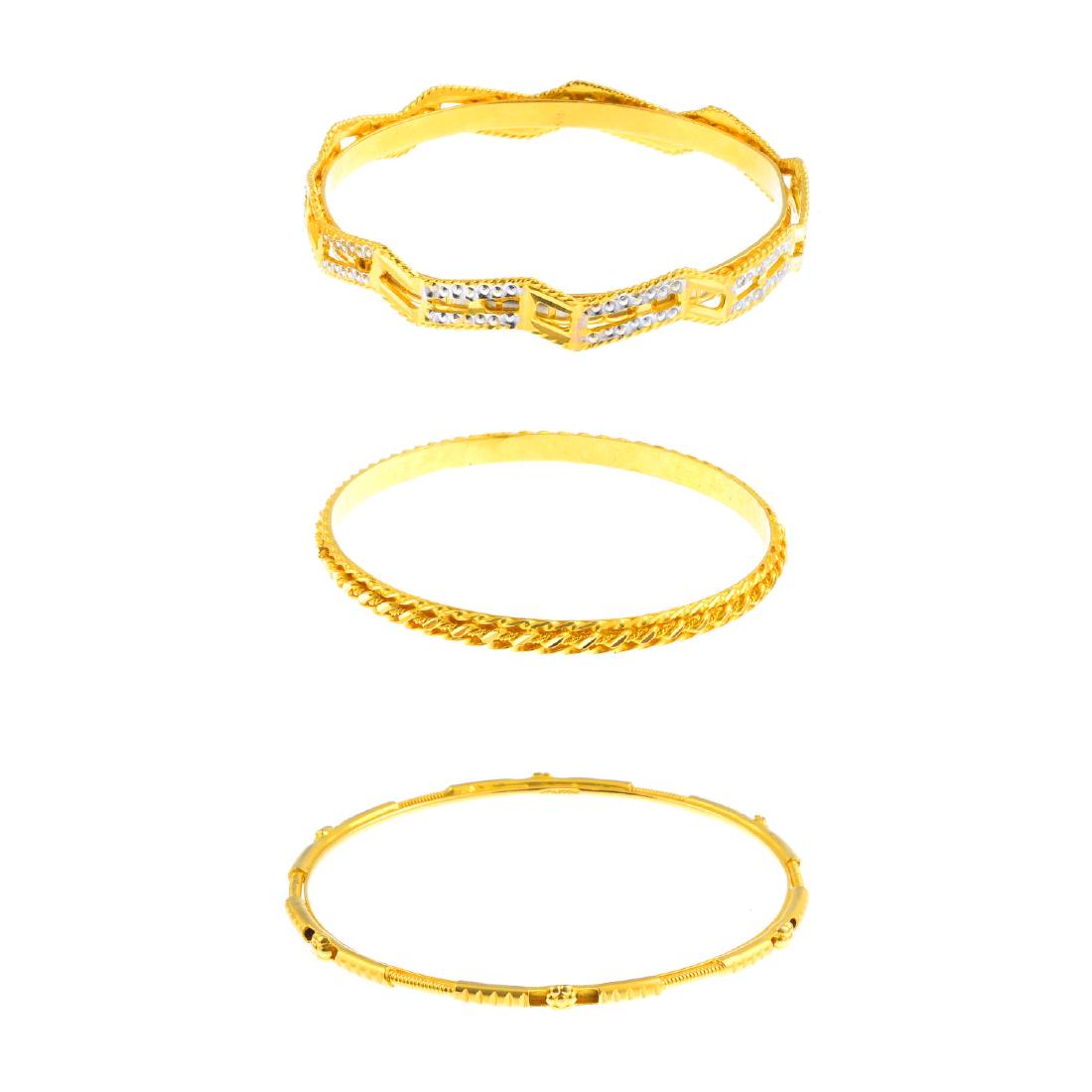 (210645) Nine bangles. To include bi-colour, textured