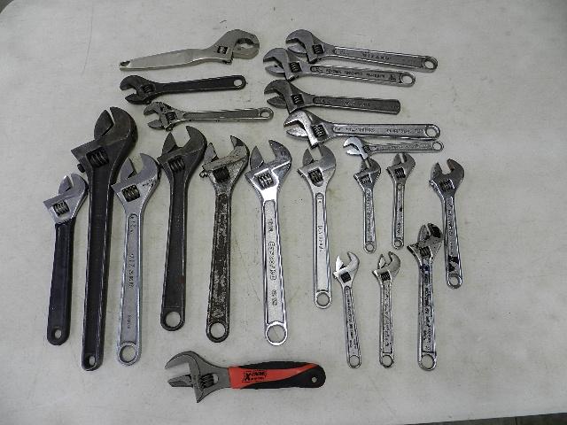 22 Various Adjustable Wrenches