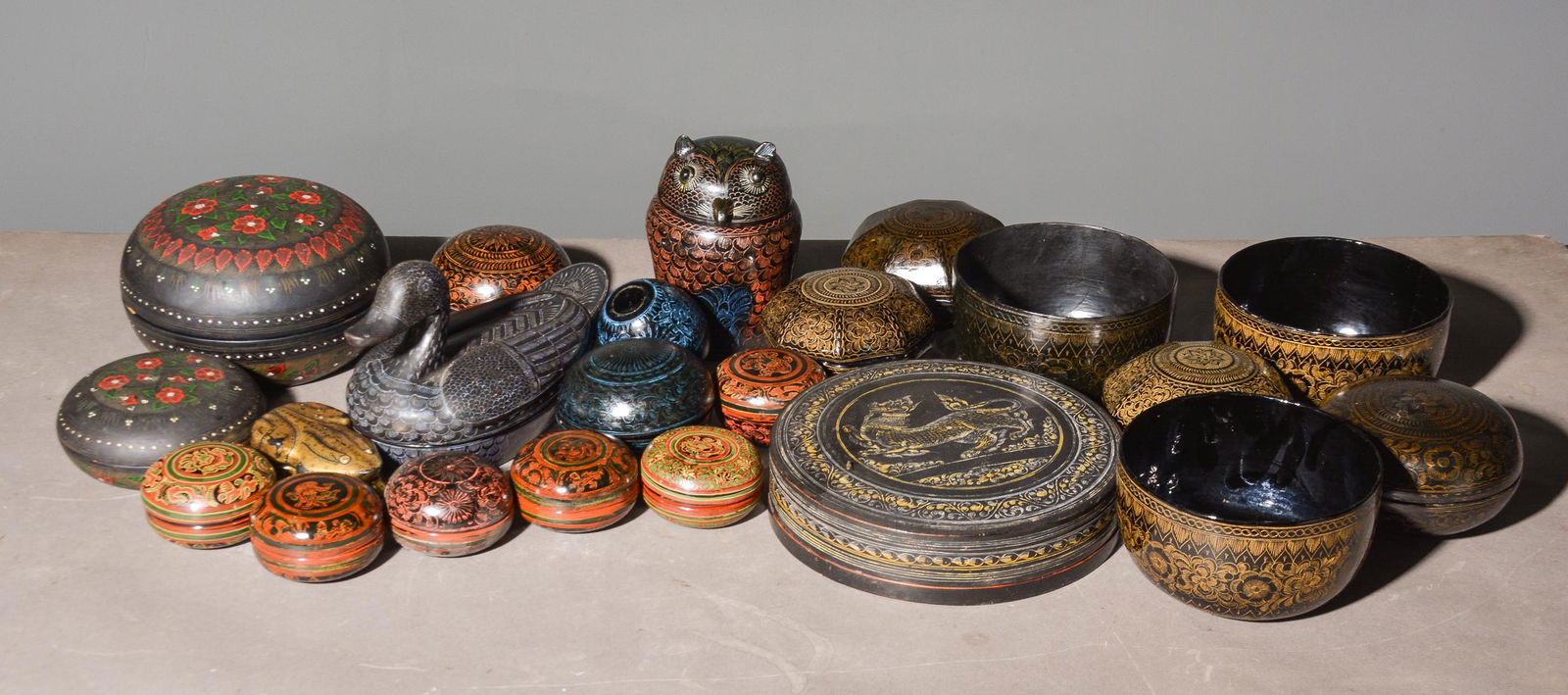 22pcs Assorted Thai Wood Lacquerware