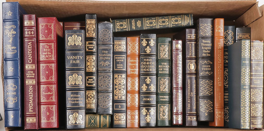 Lot 4 Antq Thrill Books 1800s-1920s Beuve+2 days Left24 LEATHER BOUND & GILT EDGE SHAKESPEARE4 days Left(50) FRENCH LEATHER-BOUND LIBRARY SHELF BOOKS, THEATER & MEMOIRSMar 28, 2026(31) FRENCH LEATHER-BOUND LIBRARY SHELF BOOKS, SCIENCE & PERIODICALSMar 28, 2026(6) FRENCH LEATHER-BOUND LIBRARY SHELF BOOKS, 'LAROUSSE' ENCYCLOPEDIASMar 28, 2026(54) FRENCH LEATHER-BOUND LIBRARY SHELF BOOKS, HISTORY & PERIODICALSMar 28, 2026DAVY, John. The Collected Works of Sir Humphry Davy.2 days Left'Le Moyen Age et la Renaissance' Leather Bound Book SetMar 24, 2026Easton Press Gilt & Leather Bound Book CollectionMar 25, 2026Group of Leather Bound Books, Twenty-Seven Total VolumesMar 28, 2026Collection of James's Works Leather Bound Books, Twelve Total VolumesMar 28, 202618 LEATHER BOUND BOOKS GEORGE ELIOTS WORKS4 days LeftSet of Easton Press works by STEINBECK, John.2 days LeftLate 19th C. Collection of The 100 Best Novels Leather Bound Books, Thirteen Total VolumesMar 28, 2026Five Bound Books of Puck and Judge Magazines with Political Cartoon LithographsApr 09, 202611pc Antique British Military Regulations Books etc.