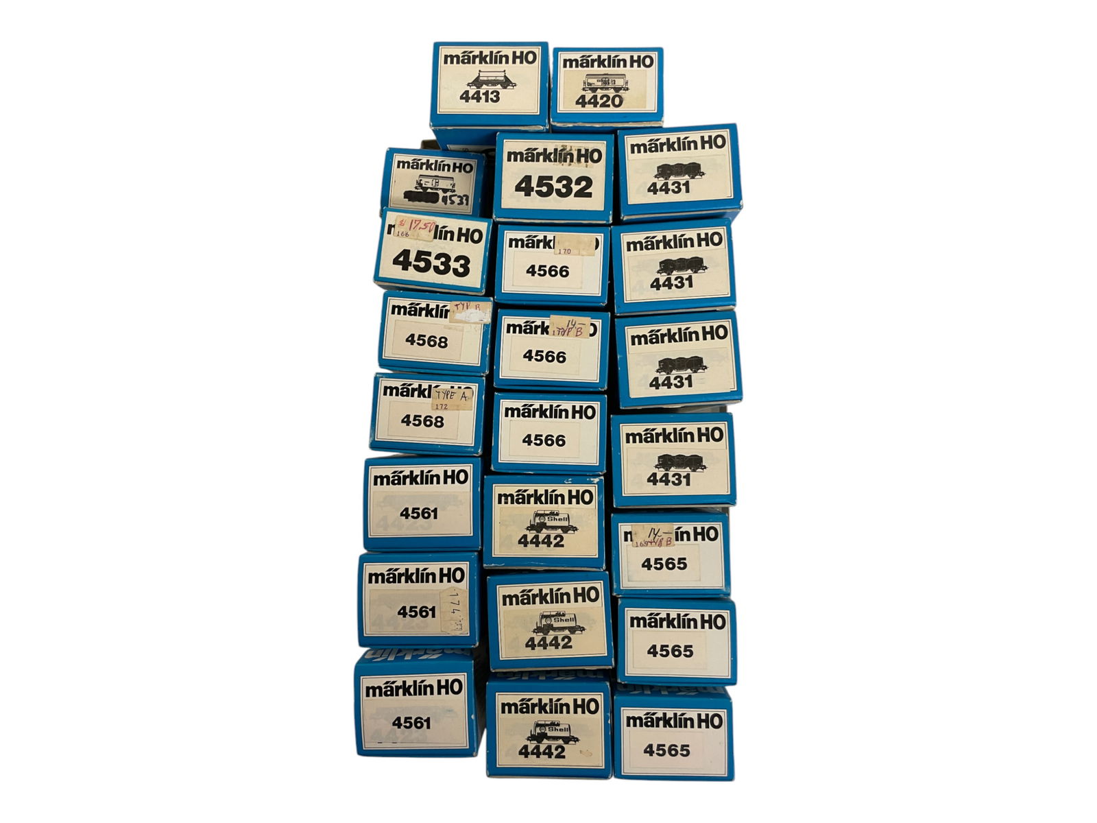 SoldDealer Lot 26 Different Marklin HO FreightsIncludes 4759, 4760, 4762, 4763, 4781, 4782, 4721, 4723, 4664, 4668, 4672, 4764, 4765, 4767, 4772, 47104715, 4716, 4717. All appear new in boxes.See Sold Price