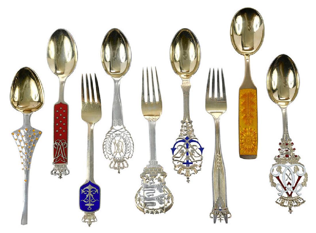 23 Pieces Michelsen Sterling Enamel Flatware