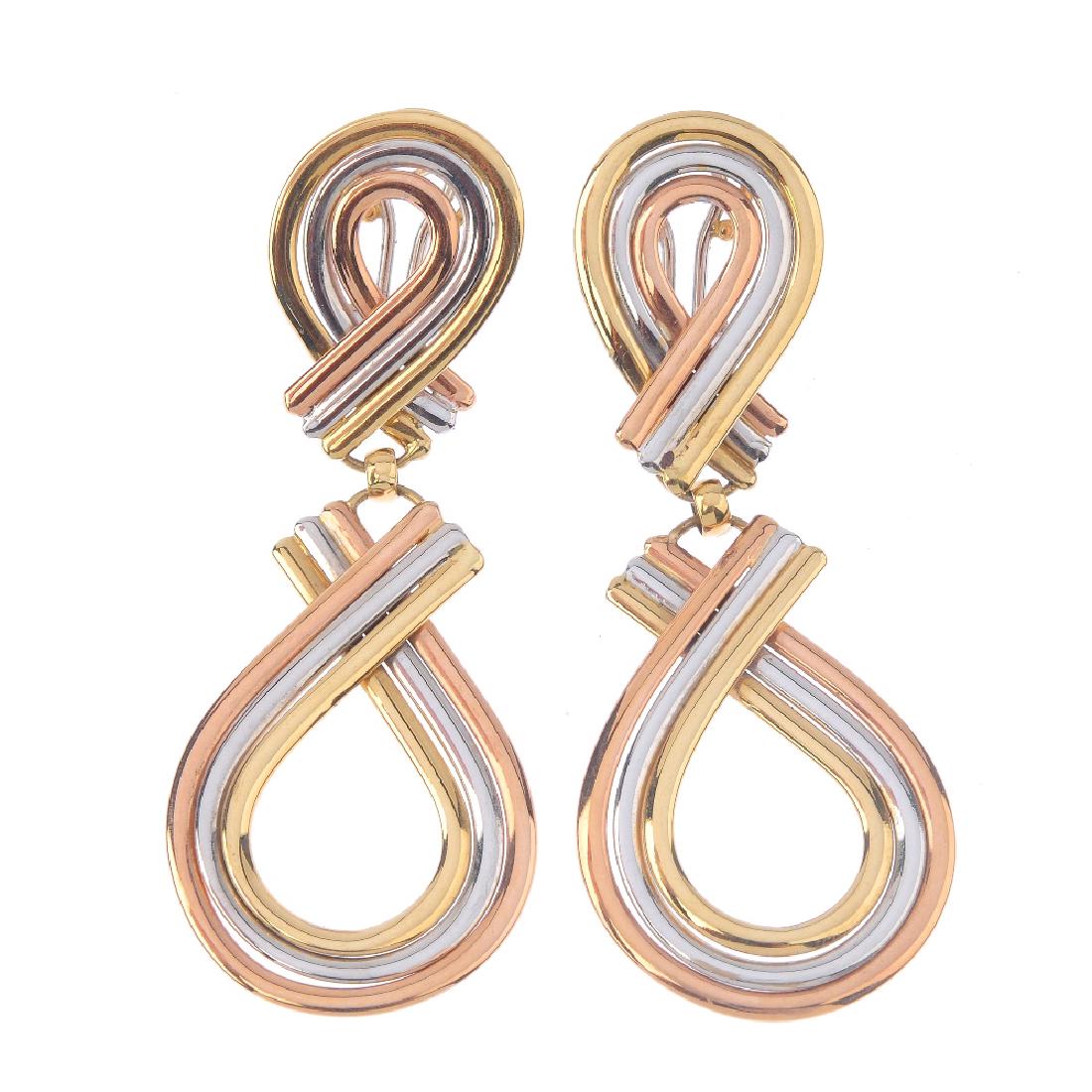 (2451) A pair earrings. Each designed as a tri-colour