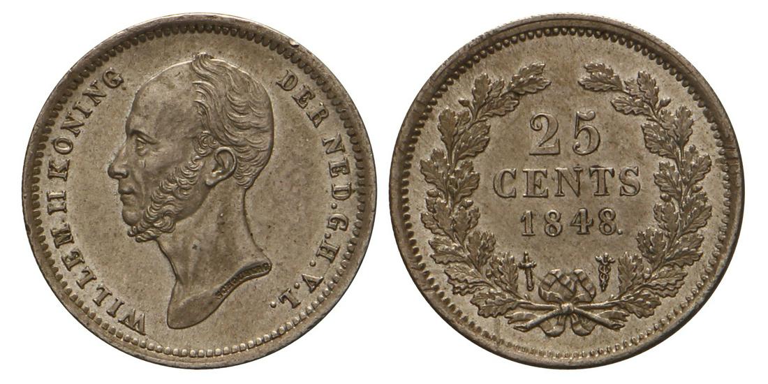 25 Cent Willem II 1848. FDC -.