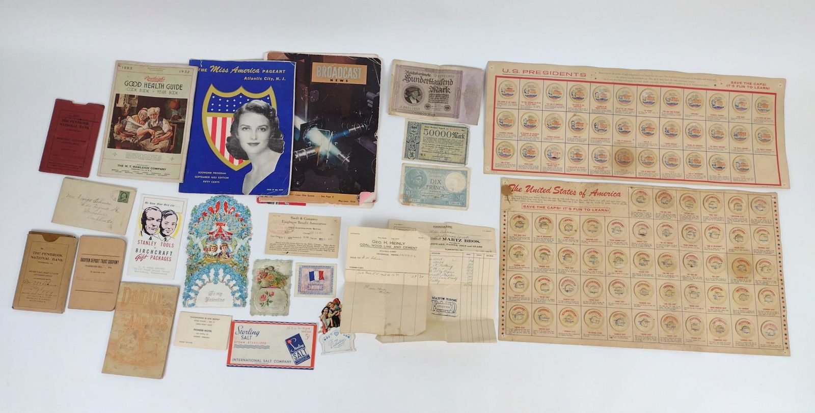 Mixed Lot of Ephemera - Advertising, Patterns, Price List, Etc.Feb 26, 2026Autograph & Vintage Ephemera Lot – 19th–20th Century Mixed Material – Letters, DocFirst Day Covers & International Banknotes LotFeb 28, 2026Large Lot Of World War II And Serviceman EphemeraAutograph & Vintage Ephemera Lot – 19th & 20th Century Material – Approximately 200 TotaWWII Ration Raleigh Cigarettes 5th War Loan Gases Dow, Singer Sewing, etc Home Front LotMar 07, 2026MILITARY MEDALS,MISCELLANEOUS LOT4 days LeftAround the World Stamp Book & Large Lot of Vintage StampsMar 08, 202677 pc Lot Black Americana Memorabilia Postcards circa 1906-1930sMar 01, 2026Collection of 25 Vintage Souvenir Postcard Folders and Booklets, Circa 1940s�1970s$289+ Face Value US Uncirculated Coin Sets, Bicentennial Commemorative Covers, and Assorted CurrencyFeb 26, 2026Approx $330 United States Coins, Presidential Dollar Sets, and Related CollectiblesFeb 26, 2026800 ANTIQUE AND VINTAGE CARDS POSTAGE STAMPS BOOKLETS3 days LeftEnvelopes and Postcards, Zionism and Judaica6 days LeftGROUP OF 1000 ANTIQUE POSTCARDS COLLECTOR CARDS EMPHEMERA3 days LeftLarge Collection of Vintage Postcards and Ephemera, 1940s-1960s