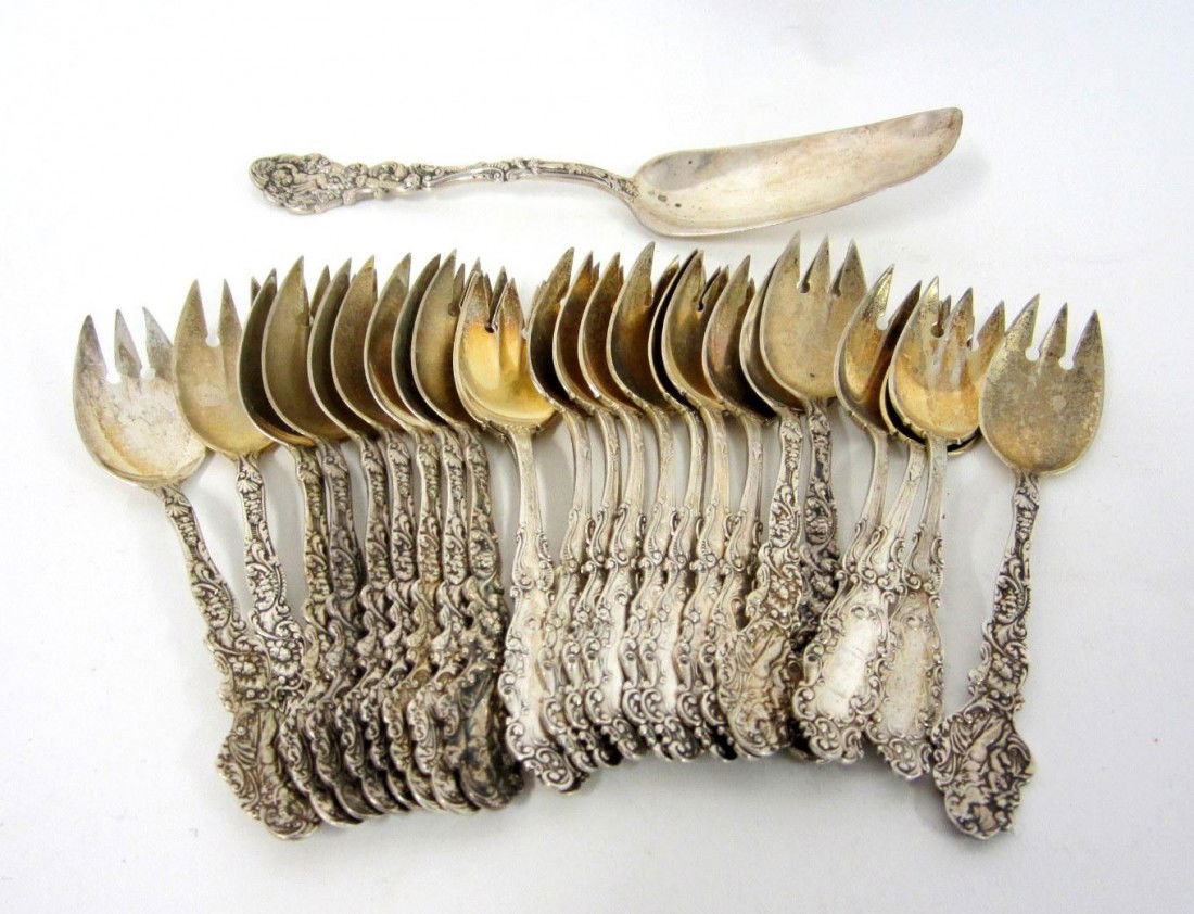 120+ Pc Lot Sterling Flatware, Rogers & GorhamFeb 21, 2026Antique Sterling Silver Spoons and Forks LOT 505g.Feb 25, 2026Sterling Silver Serving Pieces, 12 Pieces5 days LeftCollection of Sterling FlatwareFeb 14, 2026(20) Solid Coin Silver Spoons, All Are Gorham From Different Time Periods225 Lots Away9 fancy pieces of sterling silver 8.46 ozt including 2 S. Kirk berry spoons, fish server, etc.Feb 01, 2026Misc. Sterling and Coin Silver Flatware, 55 pcs.Feb 26, 202657 Misc. Pieces of Sterling Silver FlatwareFeb 26, 202637 Misc. Pieces of Sterling Silver FlatwareFeb 26, 2026S. Kirk & Son Repousse pattern sterling silver 13pc. flatware and serving pieces, 14.630ozt. 7Feb 21, 2026Group of Sterling and Coin UtensilsFeb 26, 2026(12) Solid Sterling Silver Spoons With Various Maker's Marks270 Lots AwayFancy Sterling and Silver Plate Flatware: Gorham Versailles, Reed & Barton Francis I, Etc. 10 PCSFeb 19, 2026Set of Six Sterling Silver TeaspoonsFeb 28, 2026Gorham Sterling Silver Serving Fork, Sterling Serving Spoon + Others 5.26 t oz 9 PCSFeb 19, 2026Gorham Sterling Silver "Old English" Flatware Set, 66 Pieces12 mins Left