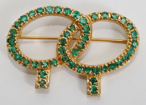 2.50 CT. EMERALD DOUBLE TREE PIN, W 1 1/2"