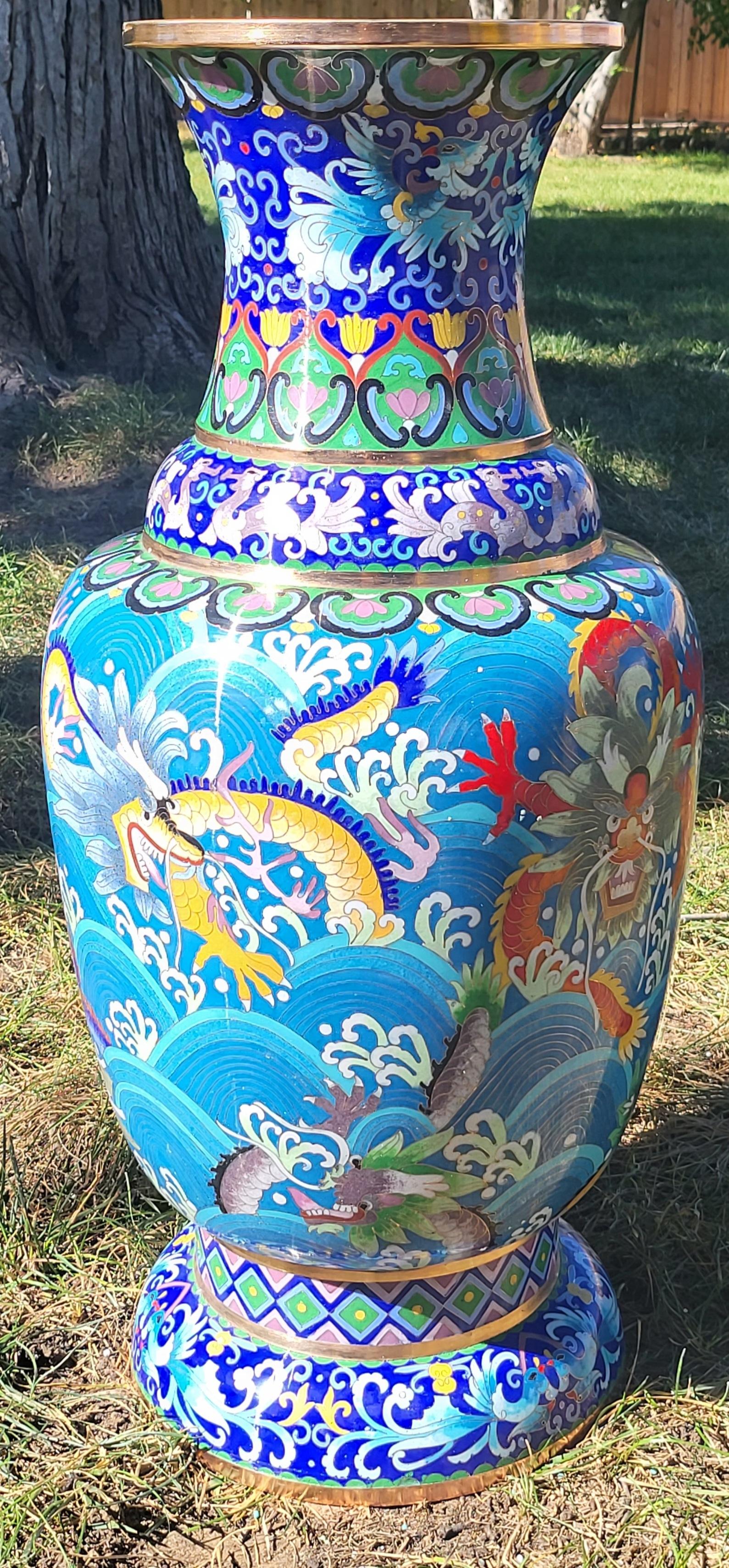 25†Dragon Phoenix Cloisonné Floor Vase