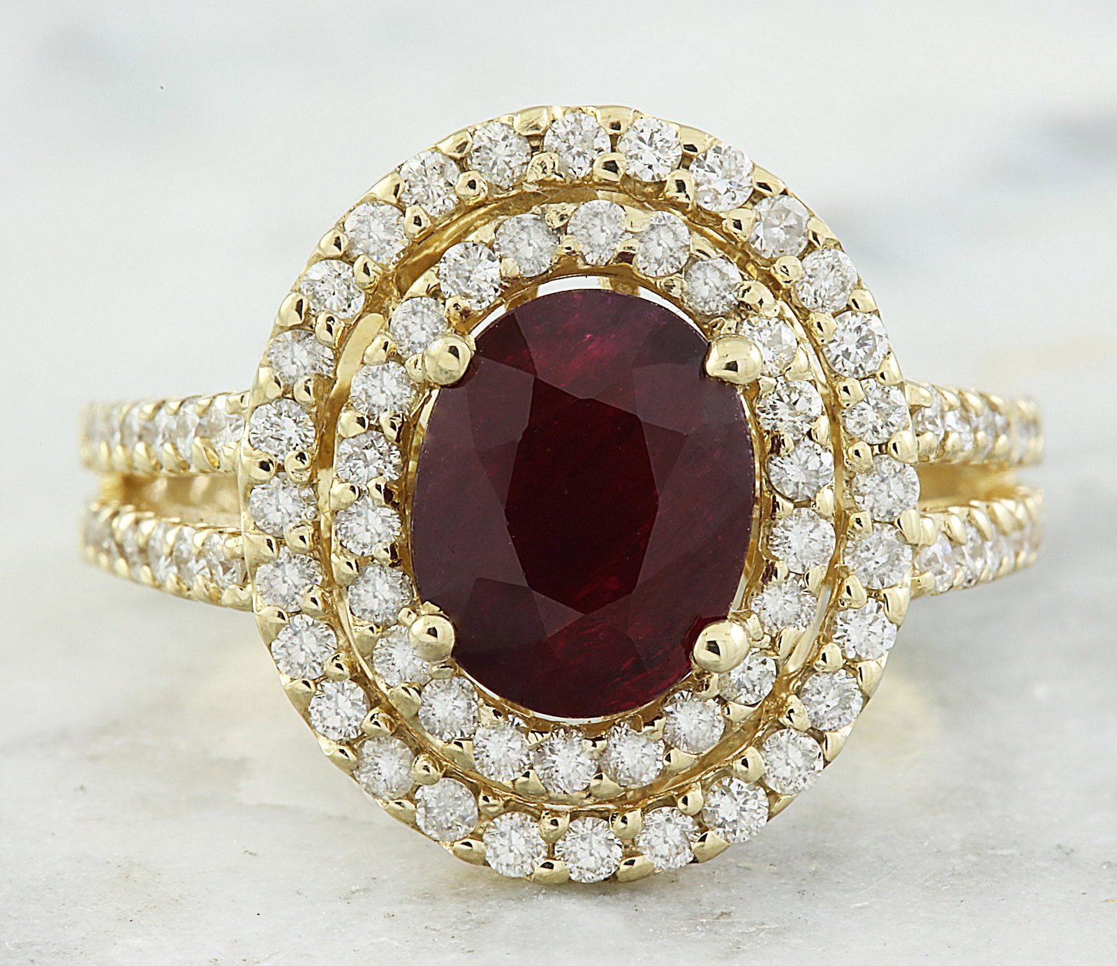 18K Yellow Gold Ladies Ring with 2.53ct Ruby and 0.63tcw Adjacent DiamondsRiverside Galleries4.5(206)$503 days Left
