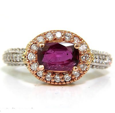 2.78CT NATURAL FINE PURPLE RED RUBY DIAMOND RING 14KT