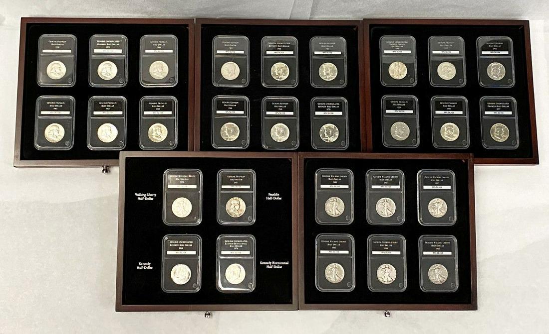 Group of Silver Dollars, Half Dollars, Quarters, etc.Apr 19, 202614 half dollars, 40% silverApr 20, 2026Eight 1964 Kennedy Silver Half Dollars5 days Left10 1964 Kennedy Silver Half Dollars5 days LeftThree 1964 Kennedy Silver Half Dollars5 days Left16 silver dollars, 45 silver dimes, 5 silver half dollars, 2 quarters, 11 nickels, one large cent2 days LeftSixteen Silver Kennedy Half Dollars5 days LeftGroup of 1964 Kennedy Silver Half DollarsApr 19, 2026(4) 1964 United States Kennedy Silver Half DollarsApr 19, 2026Group of 10 1960s Kennedy Silver Half DollarsApr 25, 2026Group of 10 1960s Kennedy Silver Half DollarsApr 25, 202631pc Assorted US Walking Liberty Silver Half DollarsGroup of 10 1960s Kennedy Silver Half DollarsApr 25, 2026Group of 10 1950s Franklin Silver Half DollarsApr 25, 2026Two Walking Liberty Silver Half Dollars - 1943 & 19445 days LeftASSORTED 90% SILVER KENNEDY/LIBERTY HALVES - (10)Apr 19, 2026