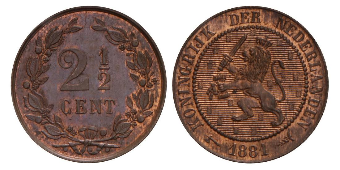 2½ Cent Willem III 1881. FDC.