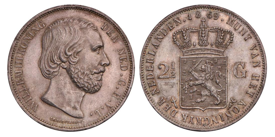 2½ Gulden Willem III 1869. FDC.