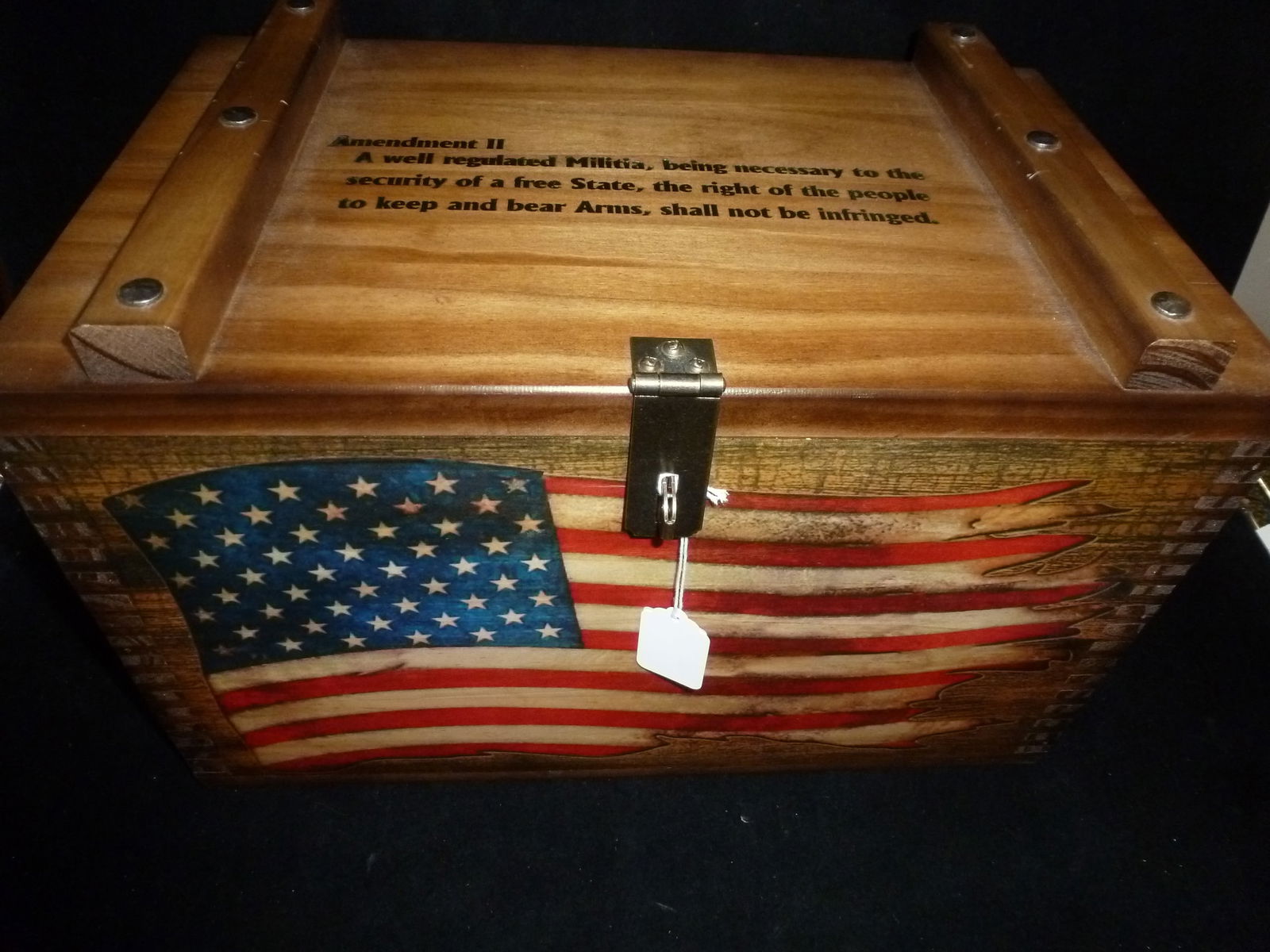 2nd Amendment Wooden Ammunition Box with Old Glory: