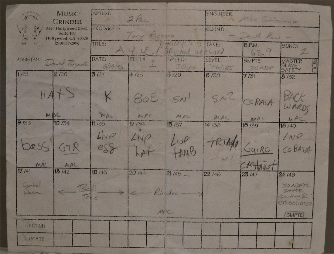 2Pac Studio Sheet , 2Pac Geffen Written deal , 2Pac