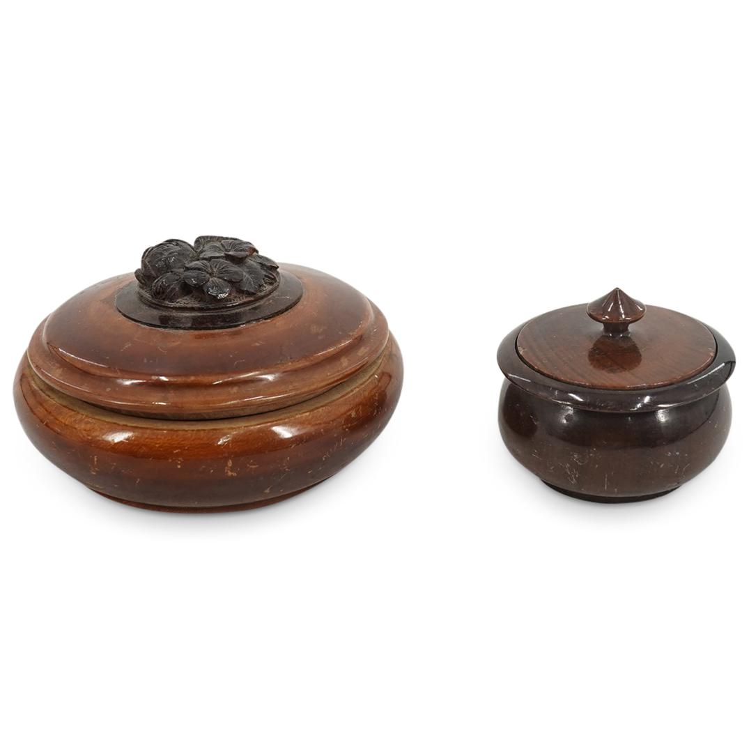 (2Pc) Antique Turned Wood Trinket Boxes