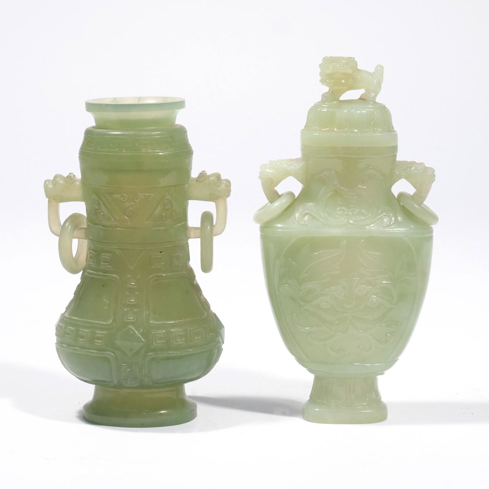 (2pc) CHINESE CARVED CELADON JADE VASES
