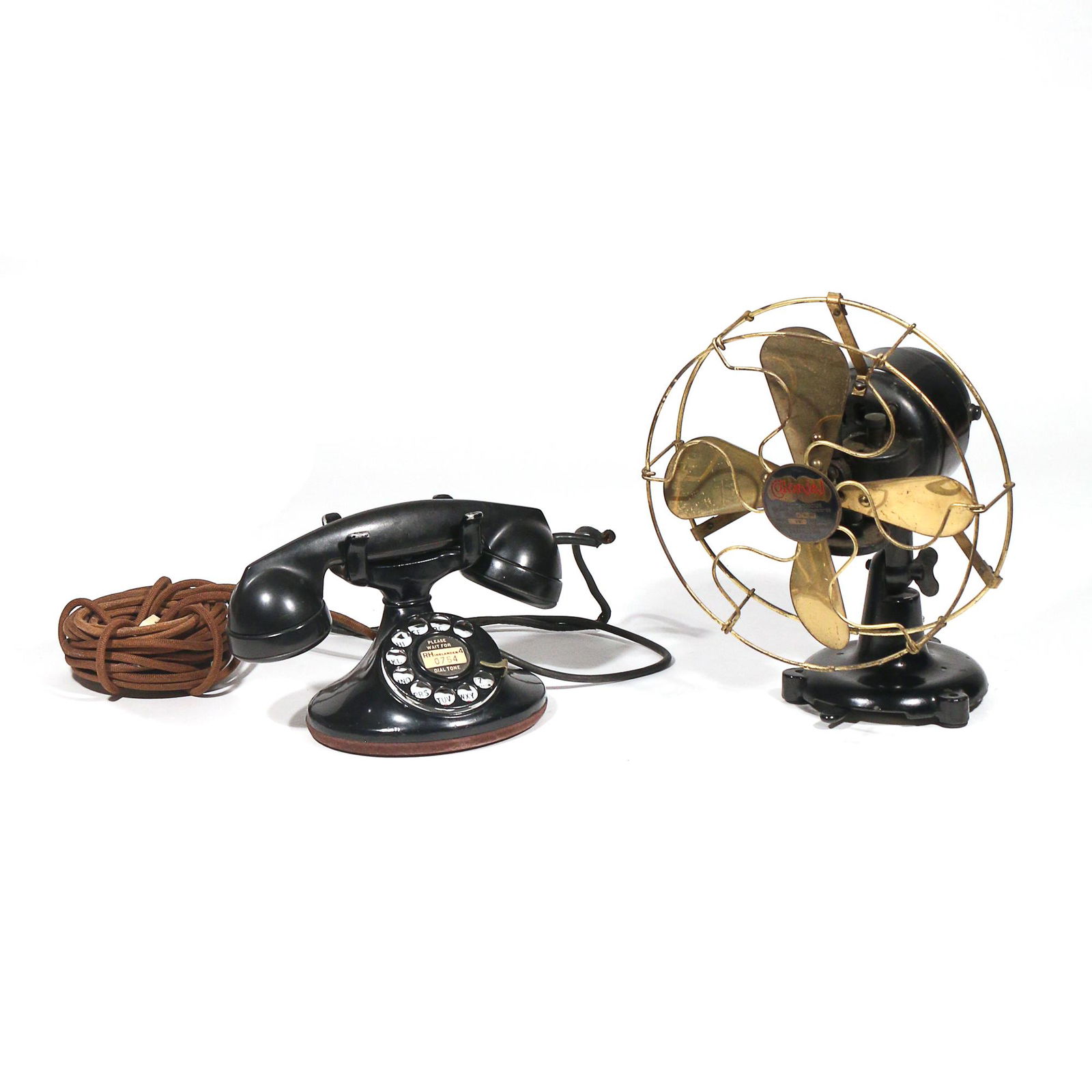 (2pc) COLONIAL TABLE FAN & BAKELITE DIAL TELEPHONE