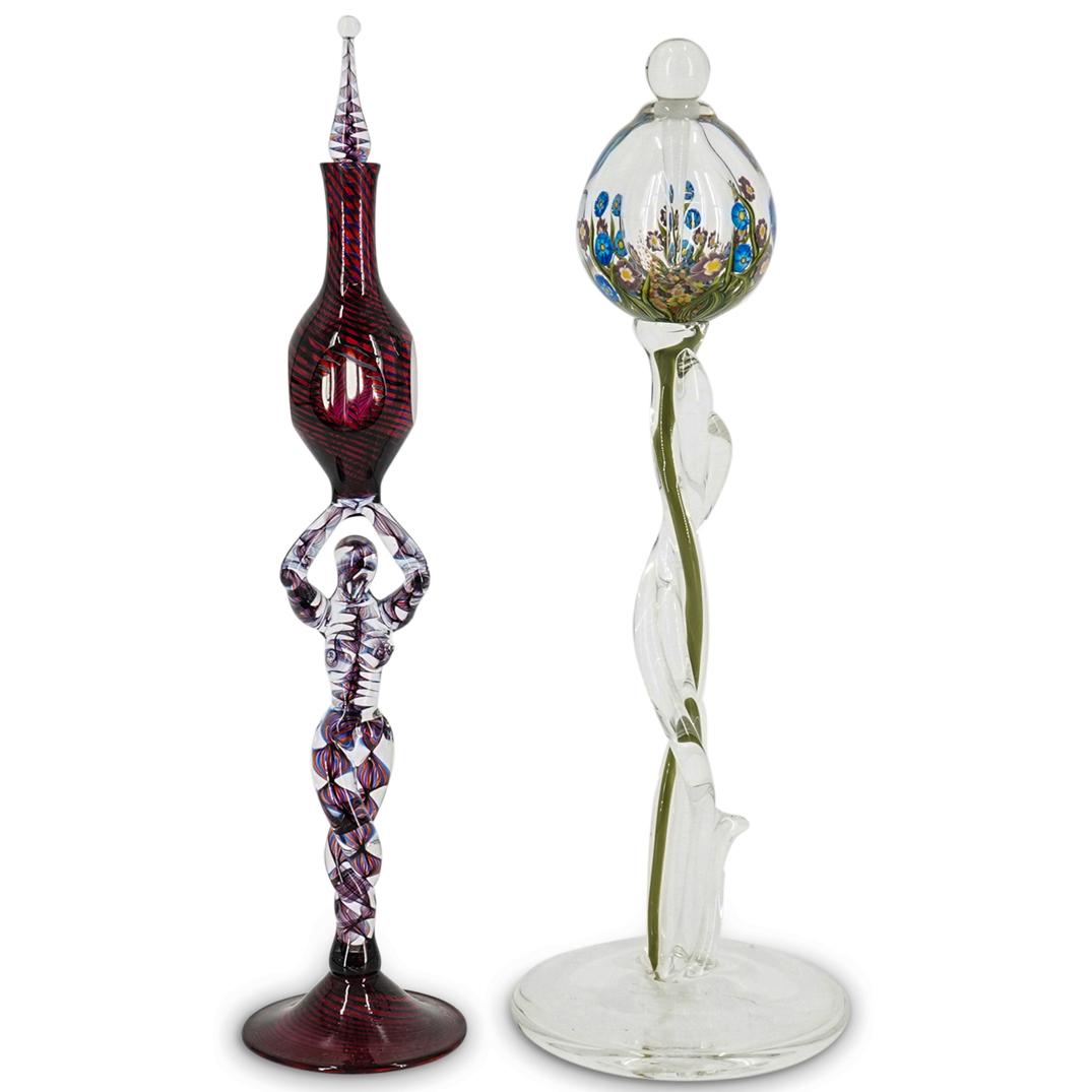 (2Pc) Crystal Perfume Bottle Sculpture Grouping