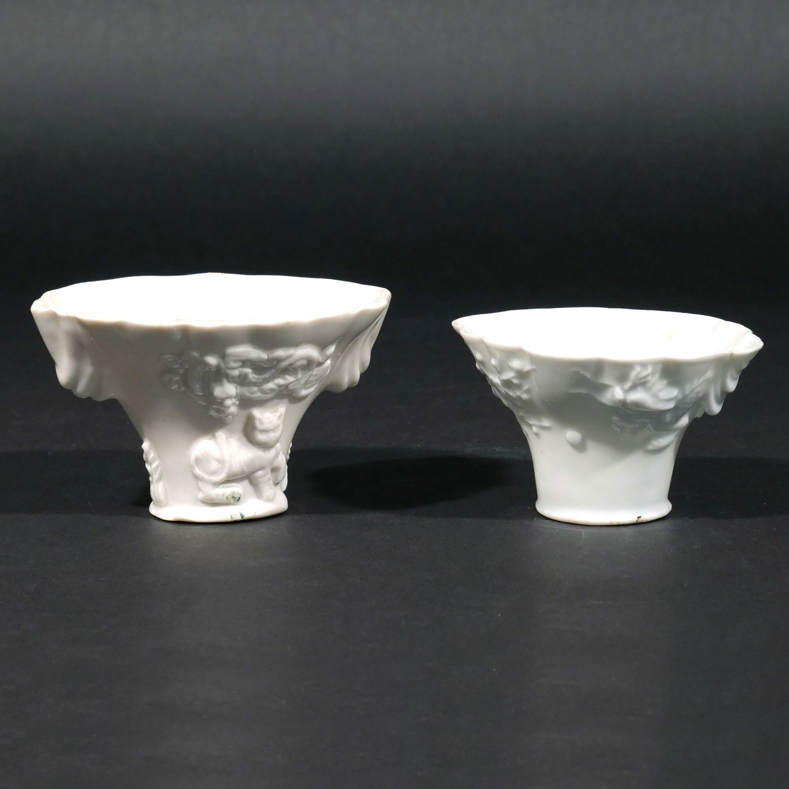 Two Chinese White Porcelain Relief Cups