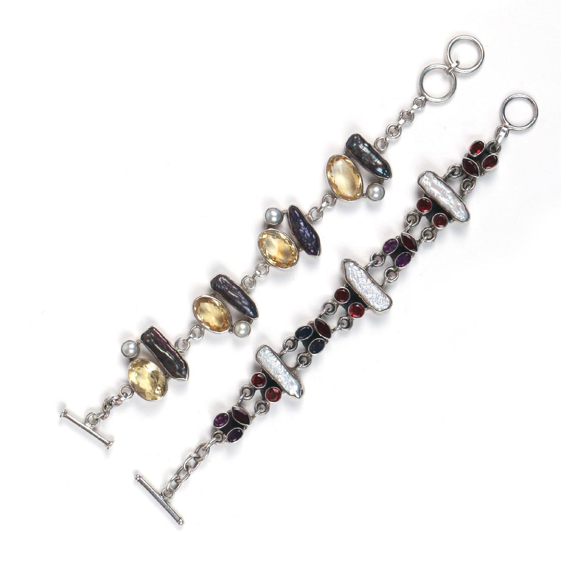 (2pc) SEMI PRECIOUS GEM & STERLING BRACELETS