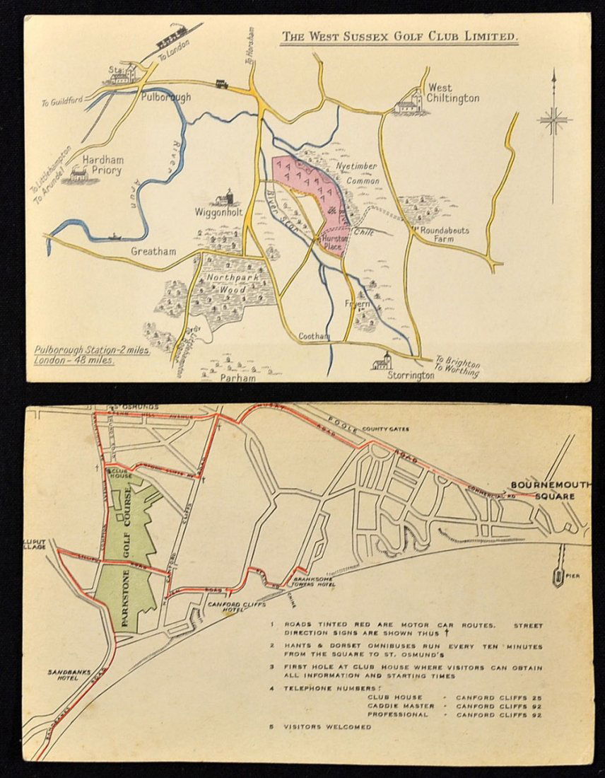 2x early golf course road map postcards - to